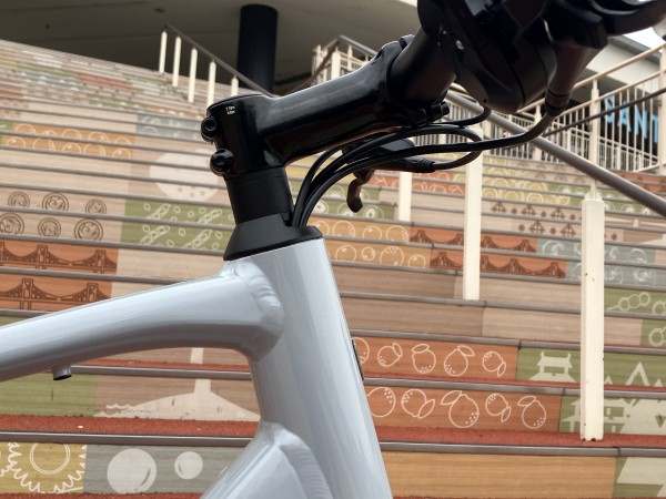 ロードバイクでは主流となりつつあるフレームの中へケーブルがはいる内装タイプですがクロスバイクでケーブル内装しているモデルは珍しいのではないでしょうか。