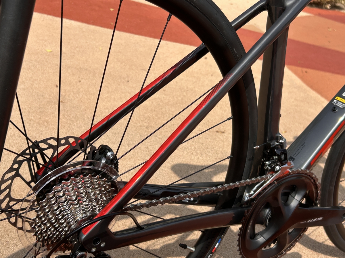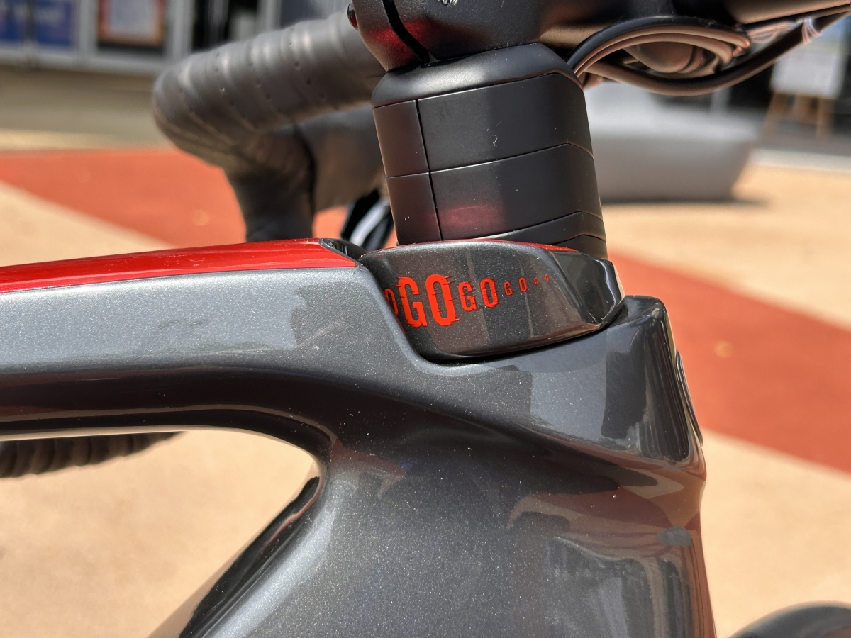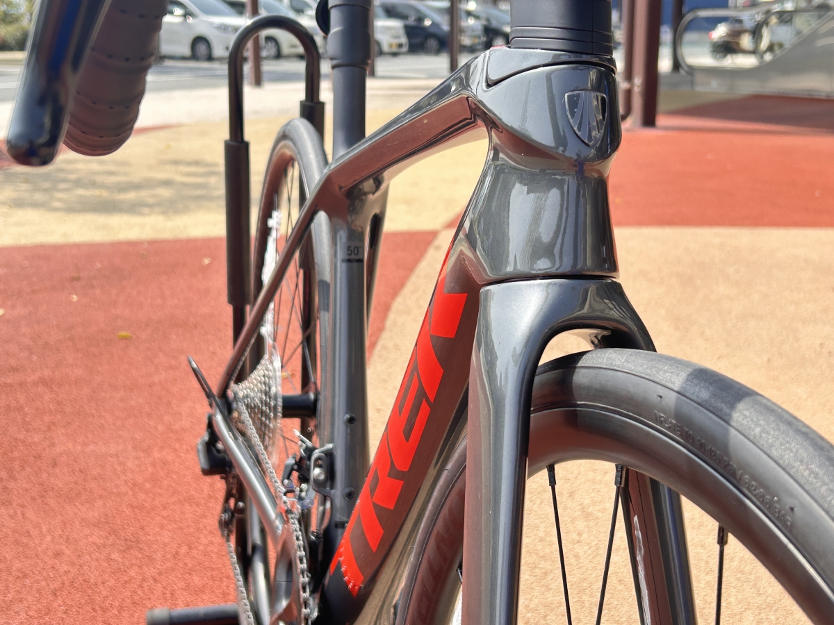 フレームやフォークは空力と剛性のちょうどいい塩梅を取った「カムテール形状」になっています。