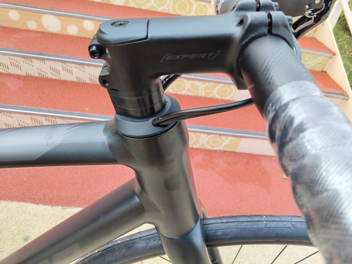 ヘッドチューブからワイヤーが内装されており、すっきりした見た目になっております。また、ワイヤーが内装されることで空力性能も向上します。