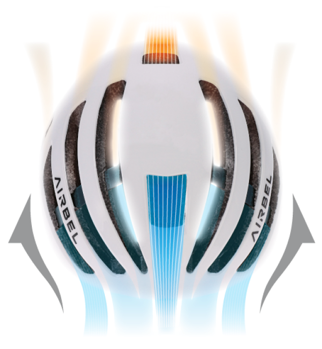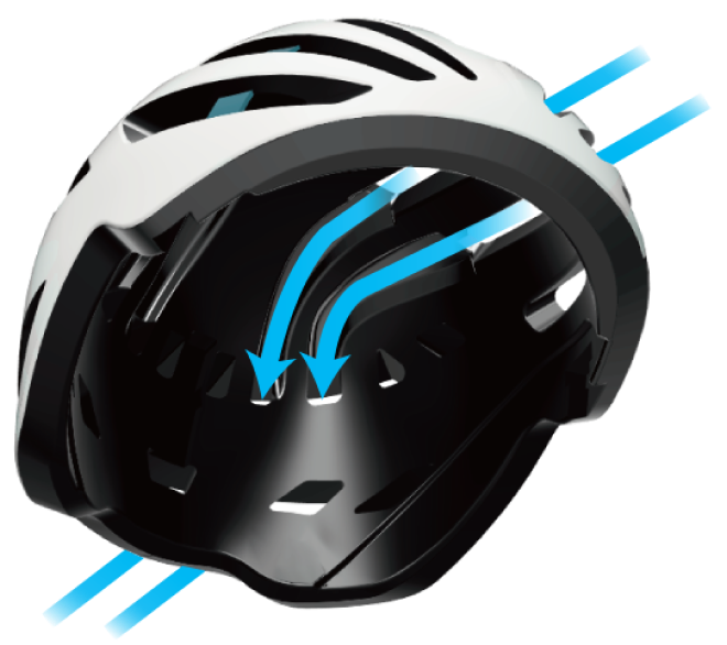 ヘルメット内の熱を自然と後方へ排出する設計で、快適なかぶり心地を実現。