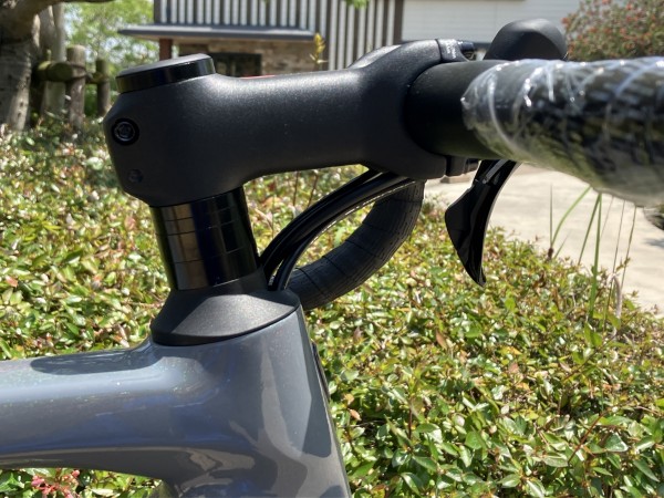 同じく現代的な作りなケーブル内装システム、ケーブル類の露出を抑えることで空力面の向上が期待できます。個人的にはライトなどのハンドル周りアクセサリーが取り付けやすいのでアクセサリーが多くなりがちなロングライド派の方にもオススメしたいのがケーブル内装タイプの車体です。