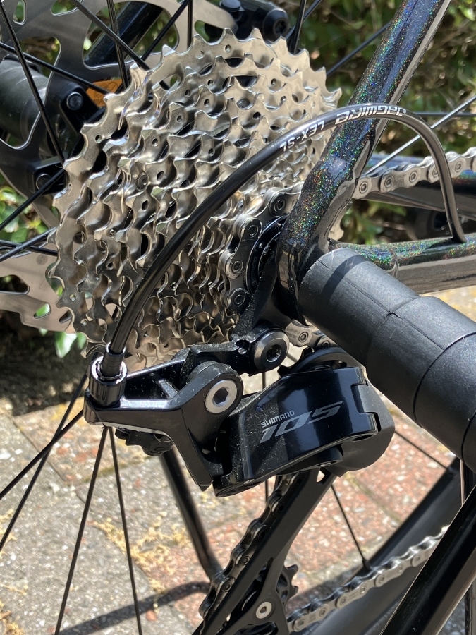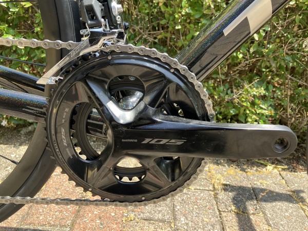 コンポは最新12速105のR7100系でフロント50-34T、リア11-34Tという現代的なギア構成。