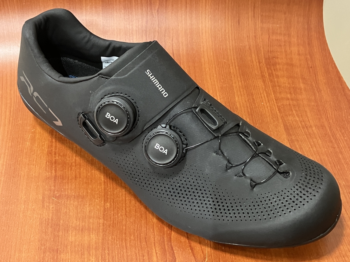 RC703はシマノのロードコンペティションシューズ。最上位グレードRC903のフィットテクノロジーを使っていますがセカンドグレードということもあり剛性やフィット感はチューニングされ扱いやすくなっています。RC903の足をぴったりと包み込むようなフィット感も素晴らしいですがセカンドグレードらしいいい意味でのゆとりを持ったフィット感のRC703の方が多くの方には合いやすいのではないでしょうか。