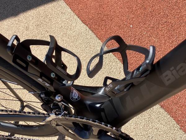 リバーシブル構造によりボトルにアクセスする方向を選べるボトルケージ。二つのパーツで構成されておりその組み合わせを変えることで向きを変更することが可能です。今回はご相談の結果、両方とも右手側からアクセスする方向で統一させていただきました。