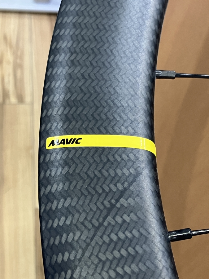 新型はMAVICのアイコン、イエロー部分が無いんですよねー。MAVICと言えば!な部分なので惜しむ方もいるのではないでしょうか。反対に新型はロゴやカーボンシートの仕上げはかなり高級感があり現代的な仕上がりになっています。