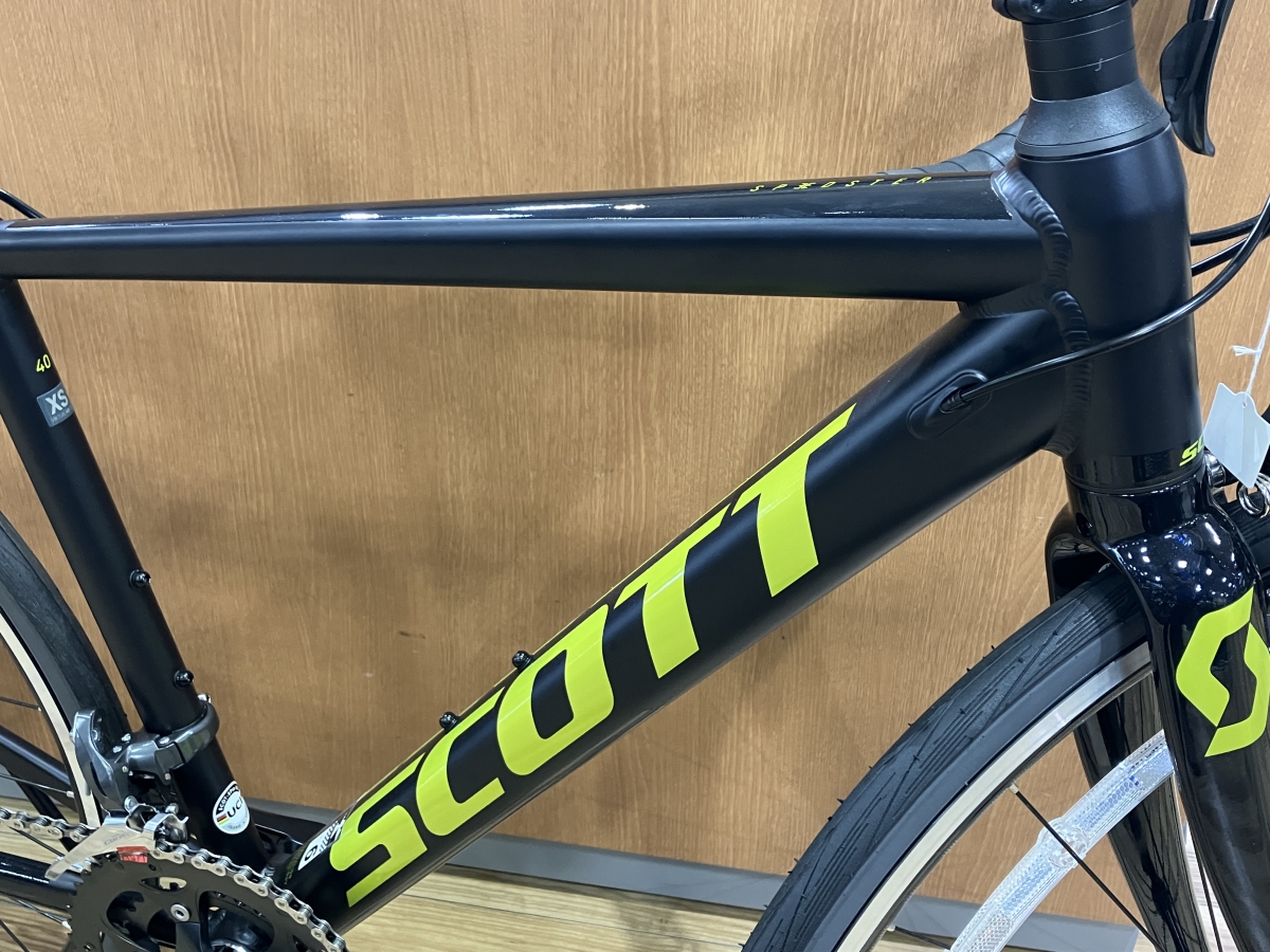 イエローのSCOTTロゴはスポーツバイクらしい派手目のグラフィック!