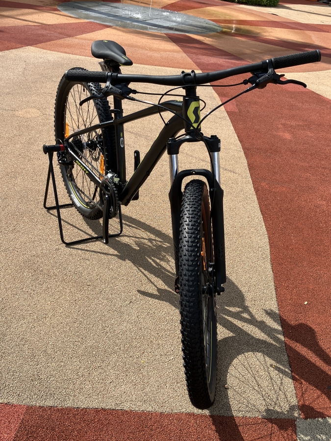 エントリーモデルには機械式DISCブレーキが採用されることも多いですがこちらはMTBらしく油圧DISCブレーキ採用。軽い力で大きな制動力を出すことができ安全安心に乗る事が出来ます。