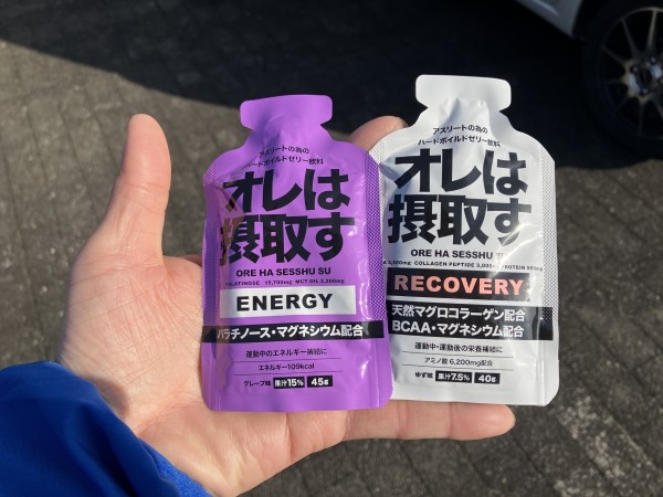 リカバリーのゆず味とエネルギーのグレープがあり、個人的には通常の補給食に近い感覚のグレープが食べやすかったです。