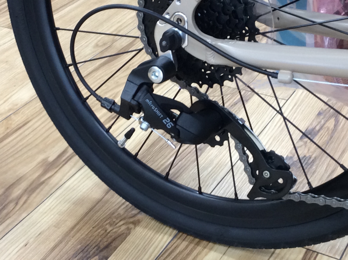 Shimano AltusからMicroshift製に変更され、シフティング操作が親指1本で直感的に行えるように。残り4本の指でしっかりとグリップを握ることで、走行時の安全性もアップ。手の小さめな女性ユーザーでも安心です。