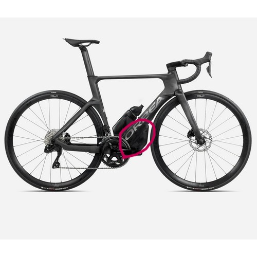 このツールケースがフロントタイヤとダウンチューブの隙間を埋めてくれて空力性能を高めています。