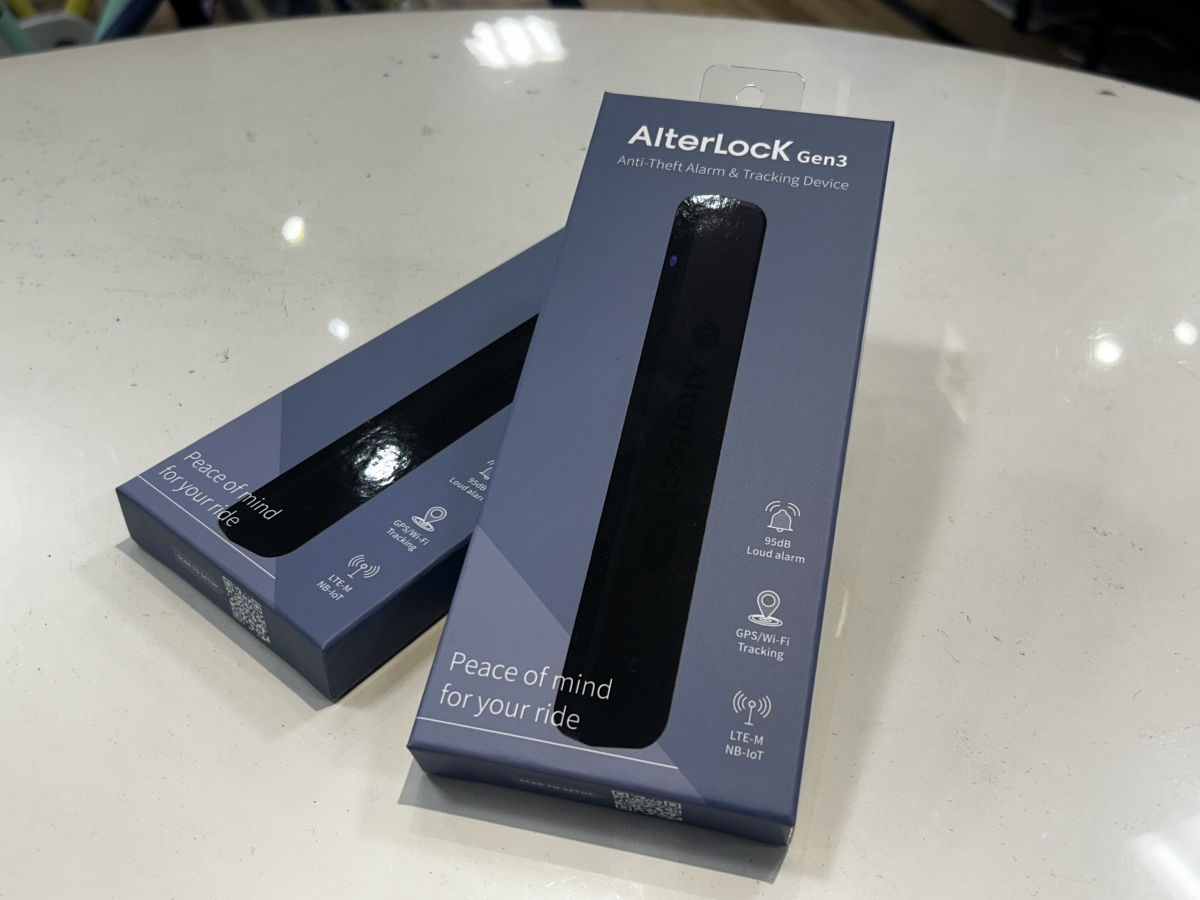 車体のボトルケージの下などに固定して使う、大音量の警報装置付きGPS、Wi-Fi追跡装置!