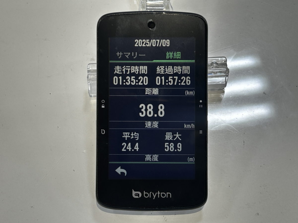 青木さんに引っ張られ平坦でも、最高速度は58.9km/h!