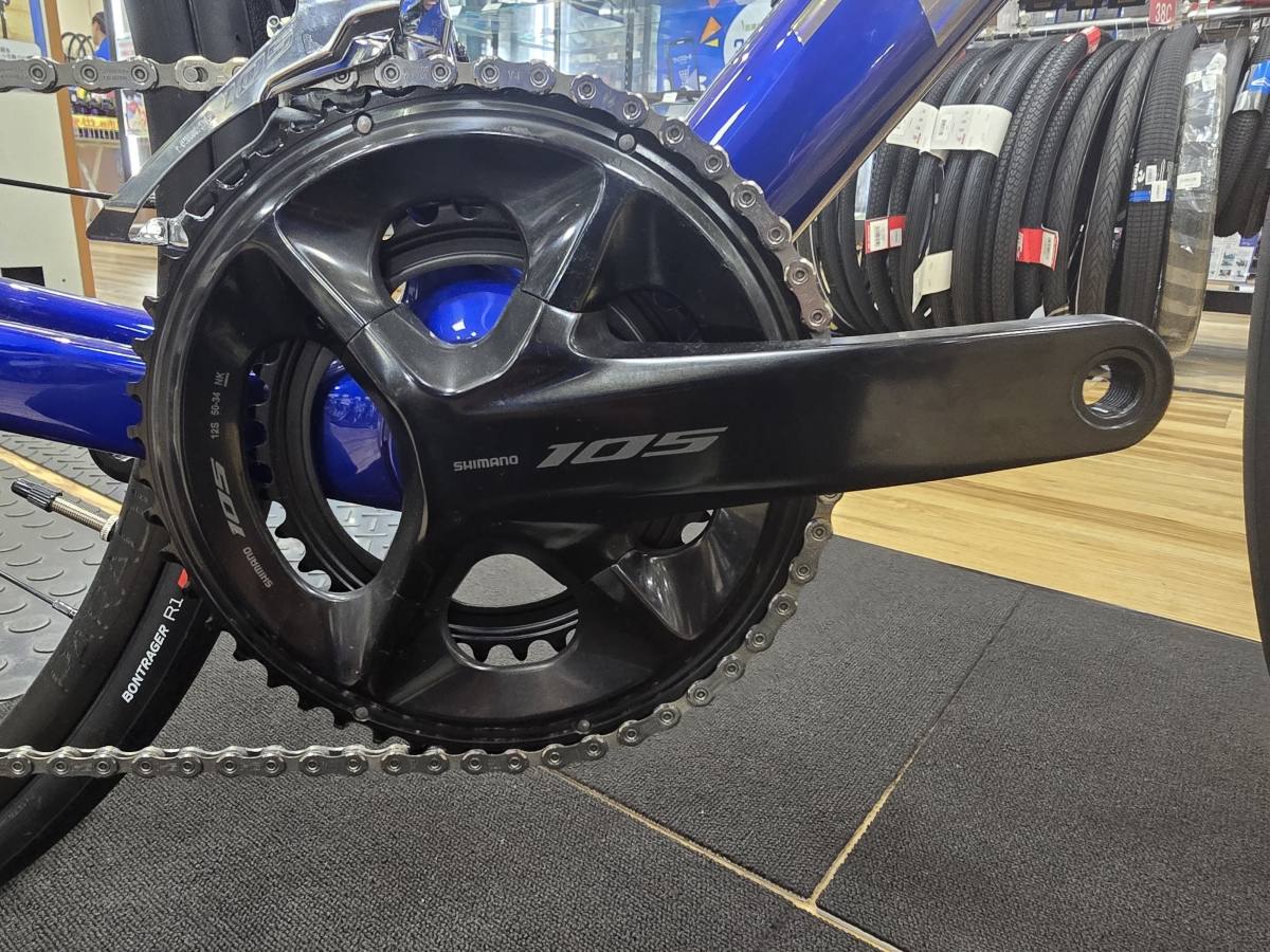 コンポーネントにはシマノ105(R7100系)を使用しており、フロント2速(50-34)リア12速(11-34)で、ブレーキは油圧ブレーキを使用しています。