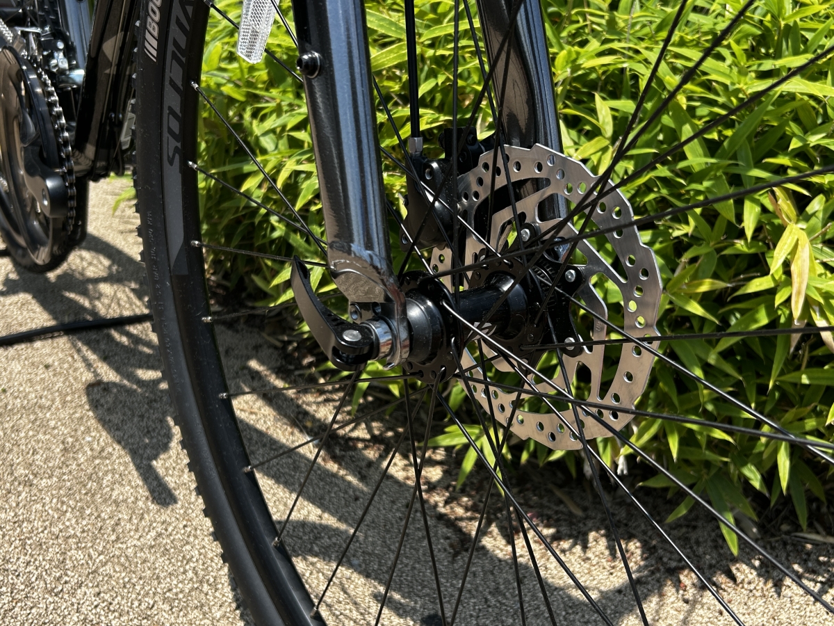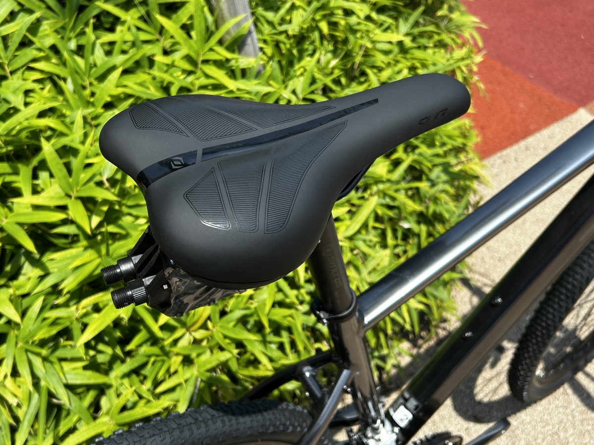 ロードバイクや一般のクロスバイクと比べると、クッションが多く入ったサドルが標準装備!