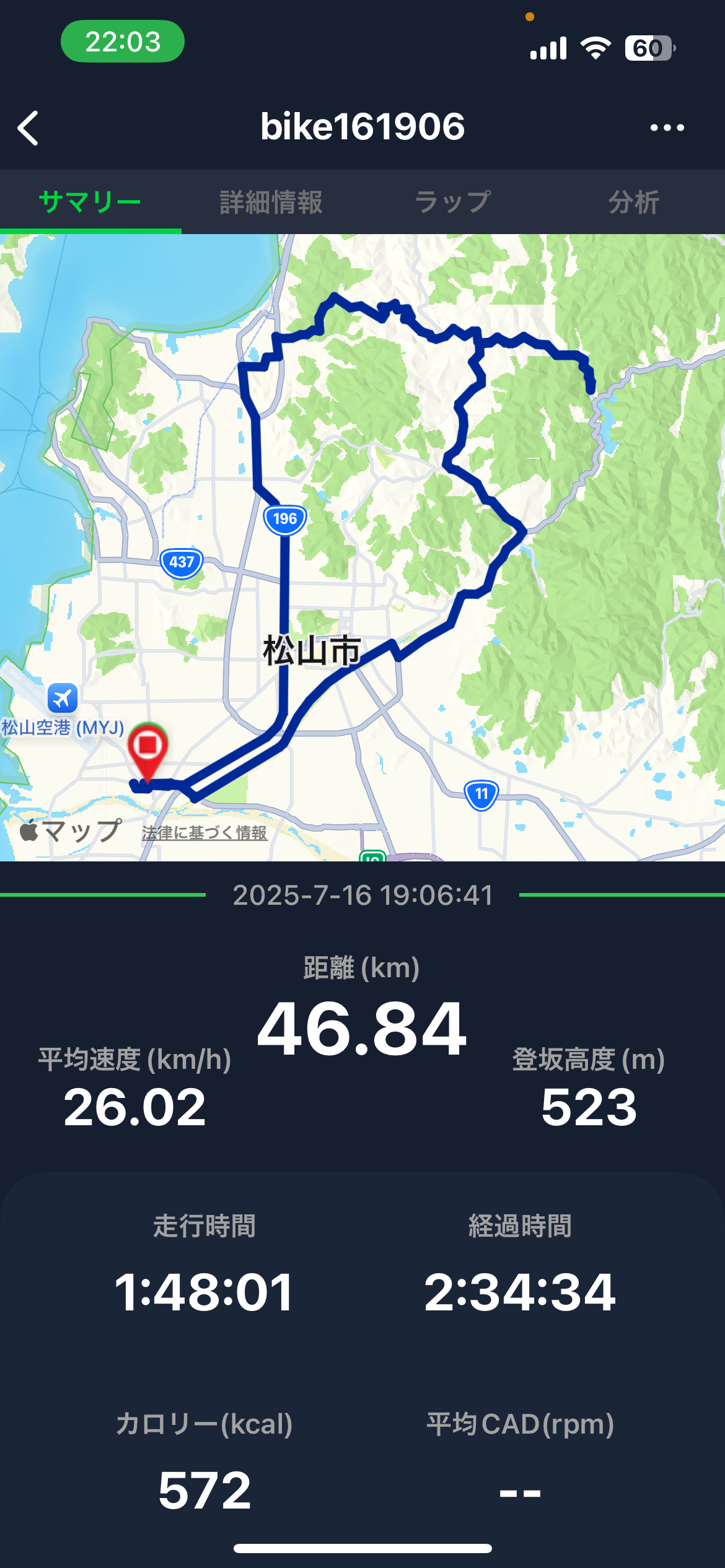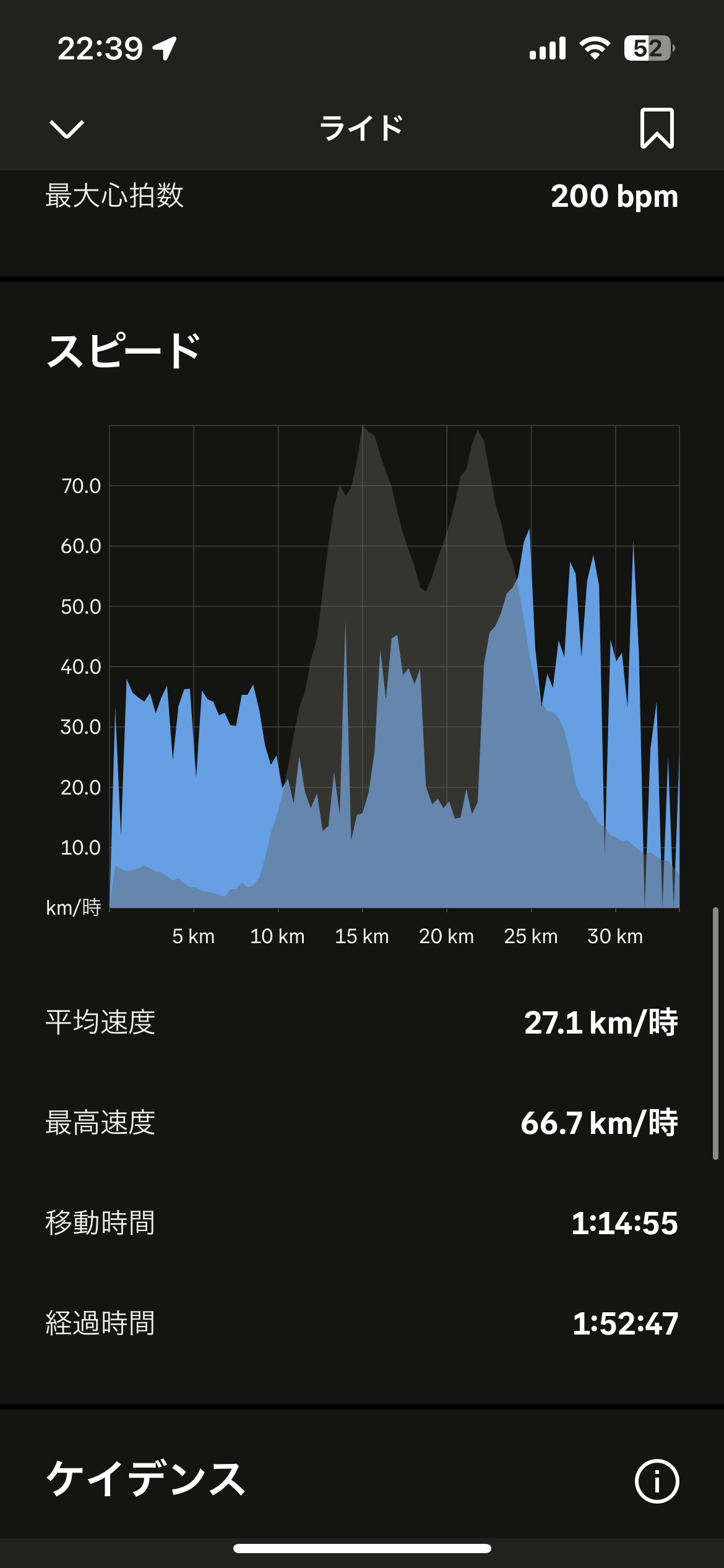 ロードバイクなので、チェーンスタビライザーが無く、そこまで速くは走れませんでした。