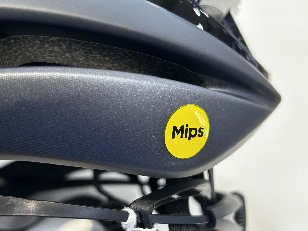 ヘルメットの後ろ側に黄色いシールが貼ってあるのが、ミップスが使われているヘルメットです。
