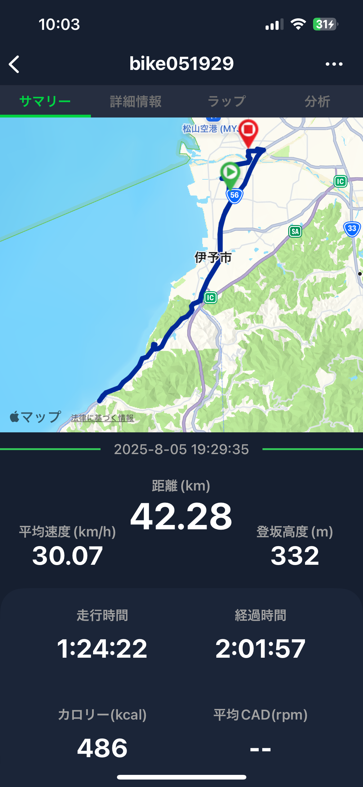 走行時は、大洲方向に若干風がありましたが、ほぼ無風です。