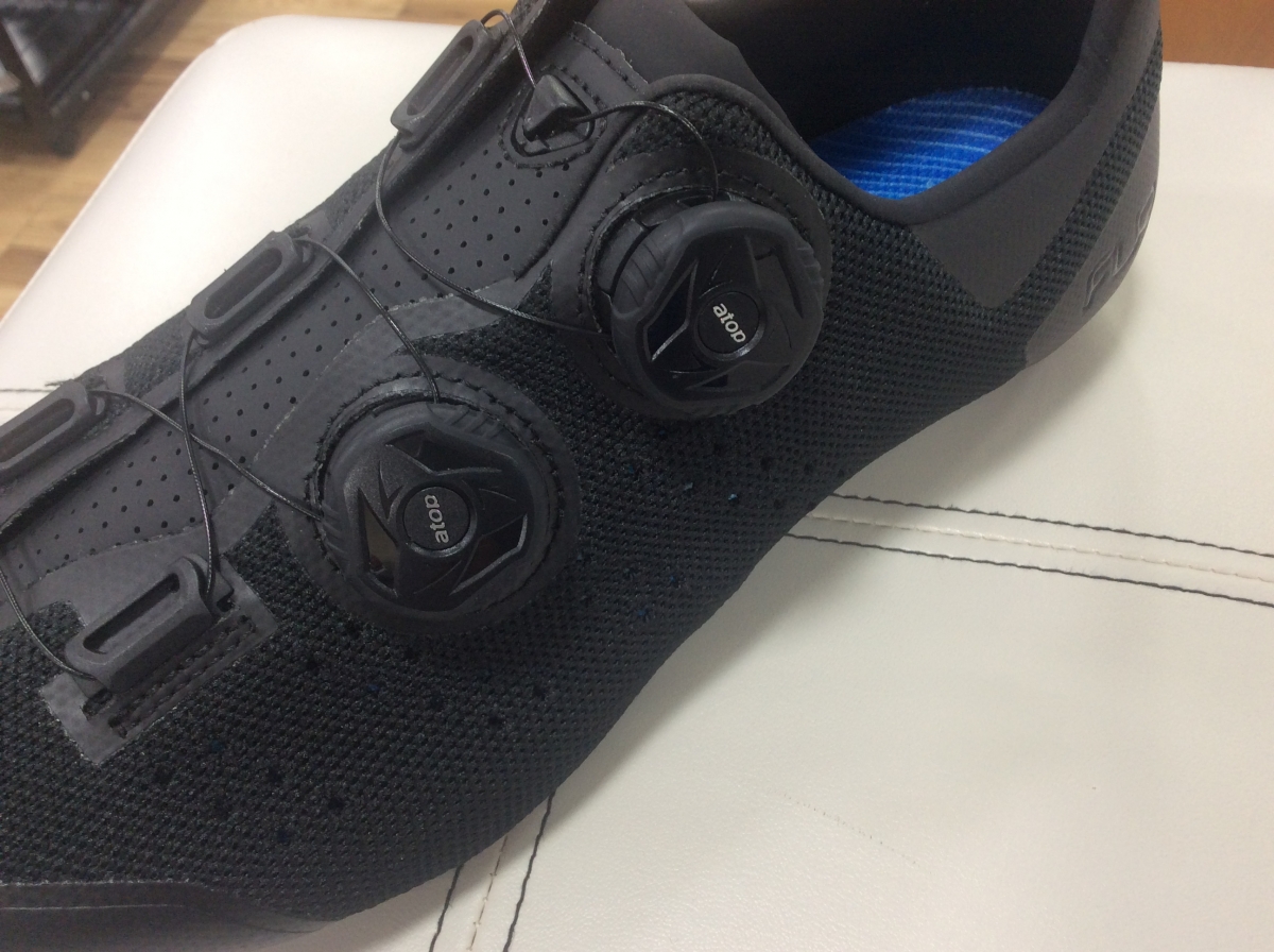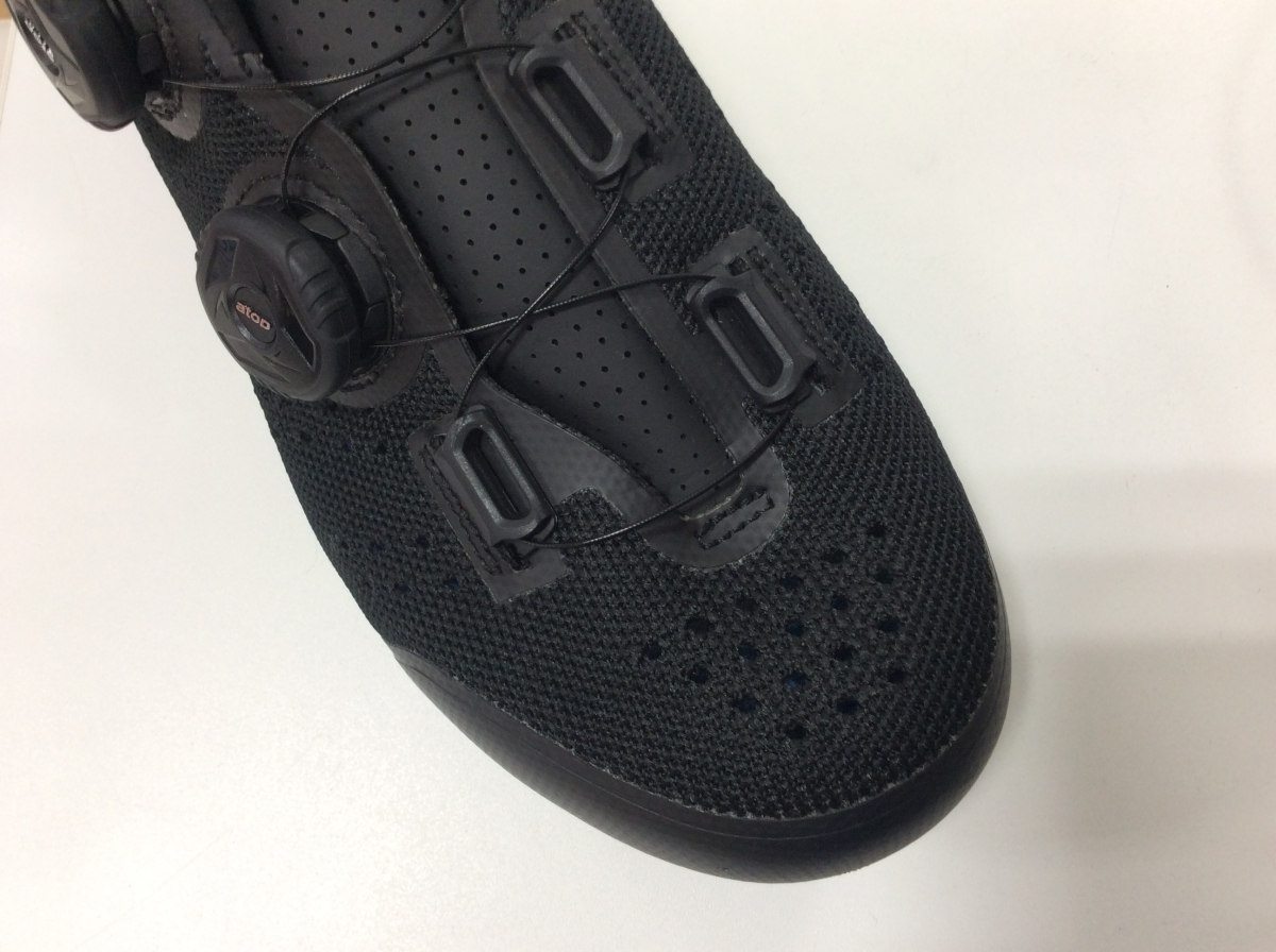 強化ナイロンストリングをニット形状に編み込んだアッパーが特徴で、ダイヤルを締めこんでも痛みを感じにくいシューズです。