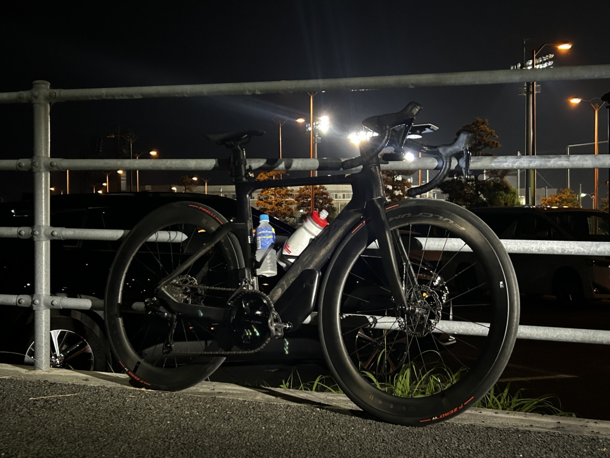 漕ぎ始めは、前試乗したウインド57とそこまで変わらなかったですが、ホイール剛性が高くダンシングでしっかり進んでくれる感じがしました。