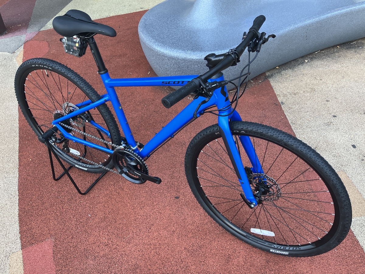 こちらもスタンドプレゼント中のSCOTT SUBCROSS J1。タフなフレームとブロックタイヤ装備のパワフルな車体で軽めの荒れた道なら走れちゃうぐらいのポテンシャルはあります。