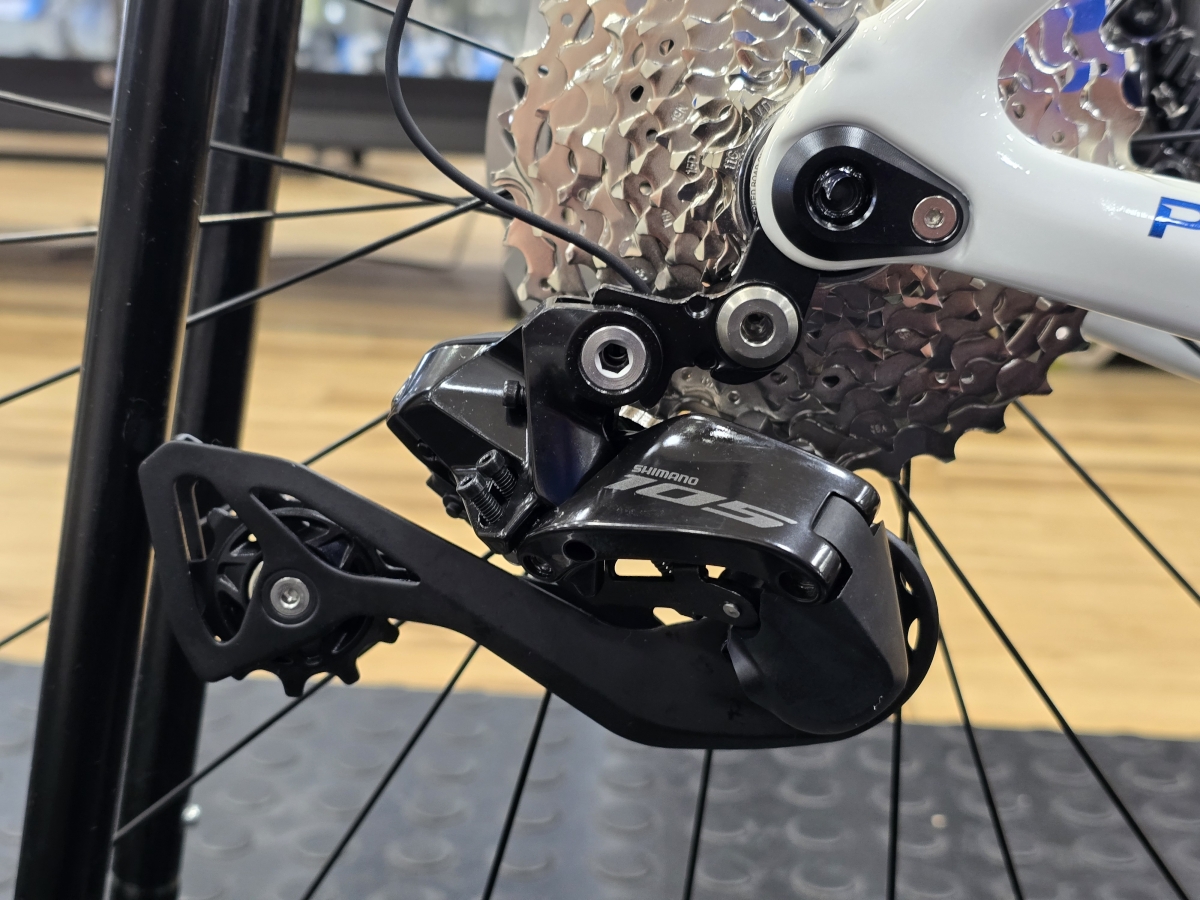 コンポーネントにはシマノの105 Di2(2×12)が使用されているので、変速も楽に切り替えられます。