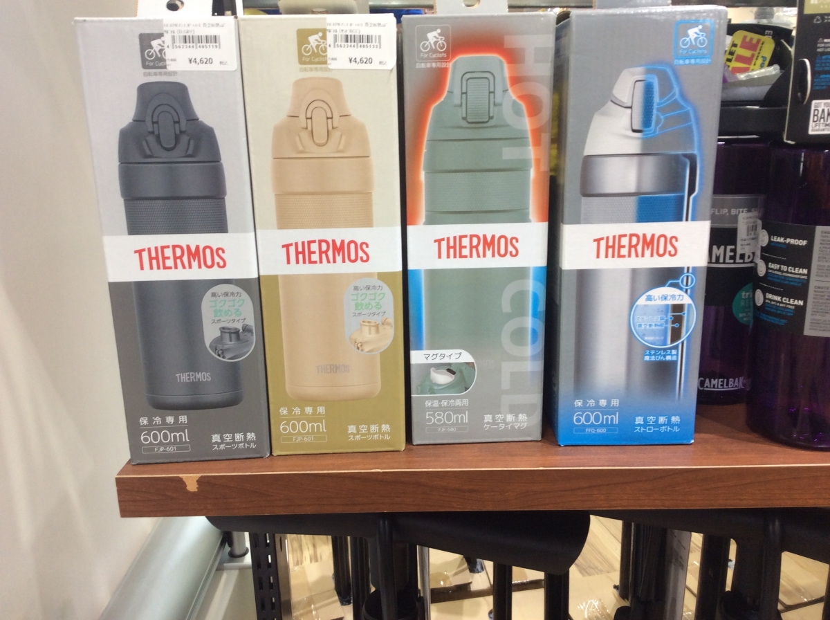 今回はTHERMOS ( サーモス )の ウォーターボトルを紹介しましたが、その他にもCAMELBAK ( キャメルバック ) のウォーターボトルも複数取寄せていますので、是非当店にお越し下さい。