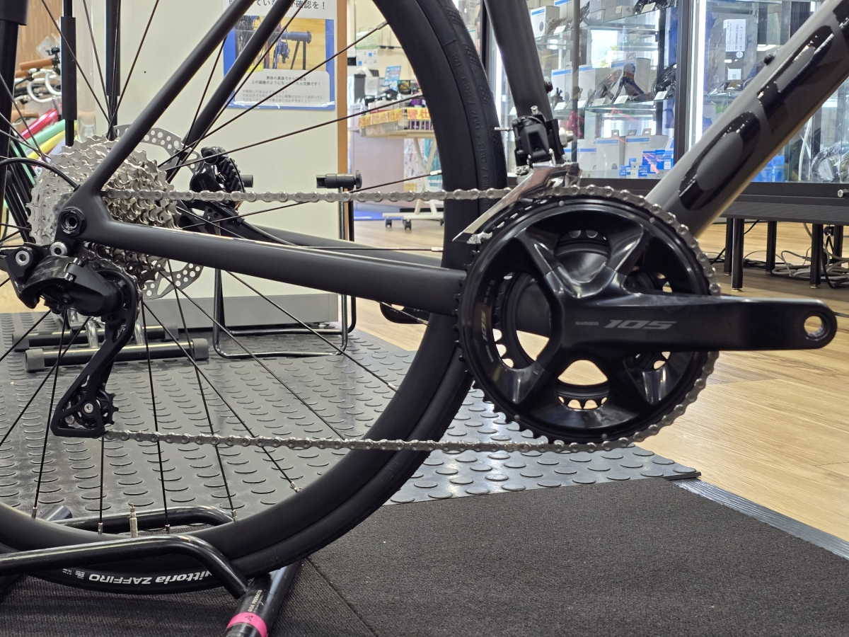 コンポーネントにはシマノの機械式105(2×12)が使用されており、レースにも持って来いです。