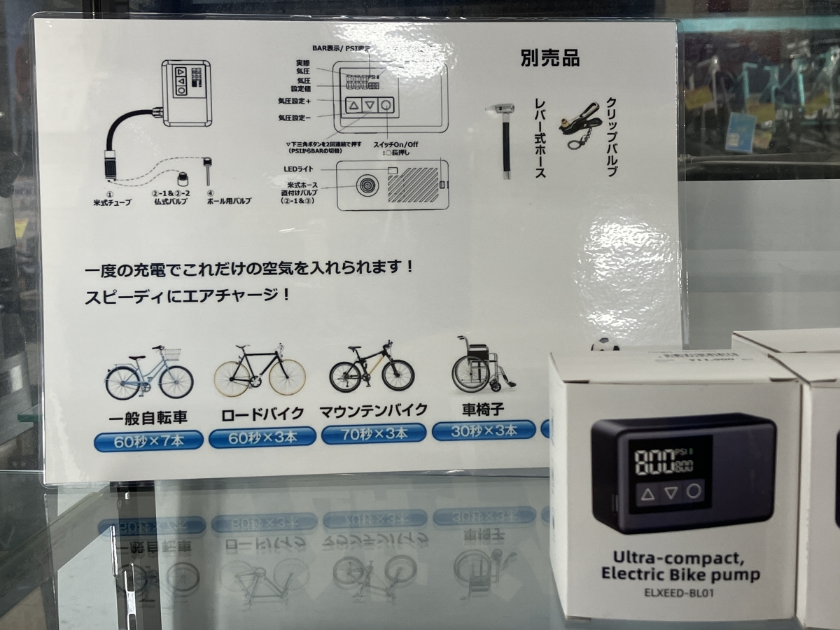 付属品も豊富で仏/米バルブに延長ホースも付属でほとんどの自転車で利用可能。