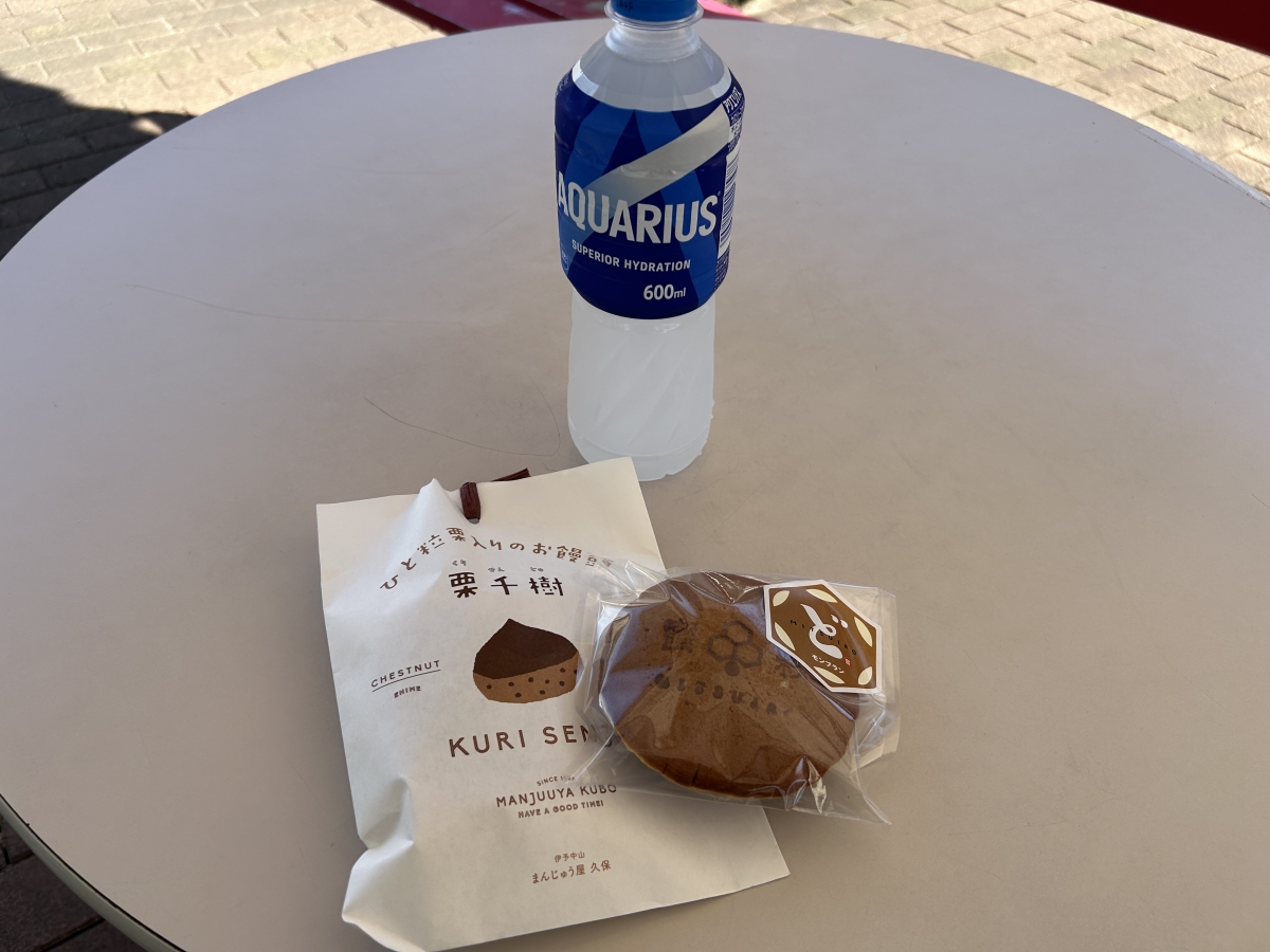 栗が丸ごと一つ入った饅頭と、どら焼きにモンブランを詰め込んだお菓子を買ってきました!