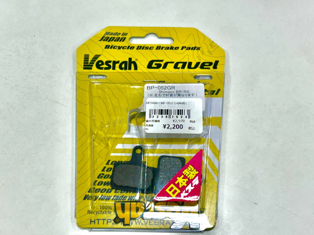 グラベルにも使える制動力の高いブレーキパッド。