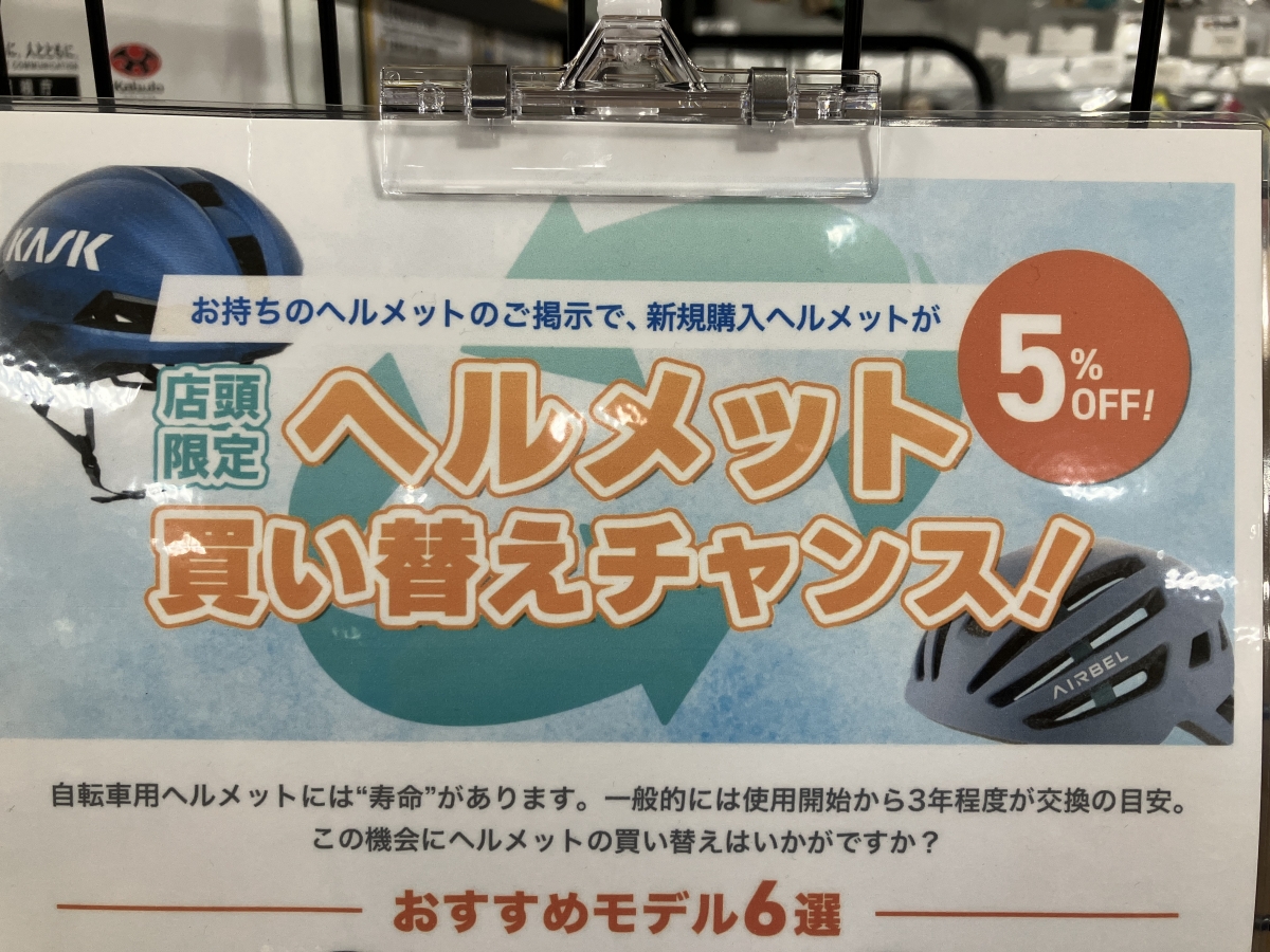 ただいま5%OFF!になるキャンペーンもやってます。条件はいま利用中のヘルメットを提示いただくだけです。