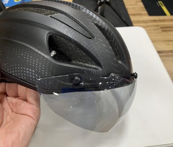 アイウェア代わりに使えるシールドが付属しており飛来物や目の乾燥といったダメージを防ぎやすくなっています。