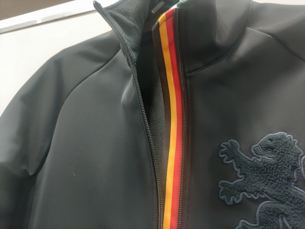 ファスナーを開けるとベルギー3色ラインのフラップが見えます。