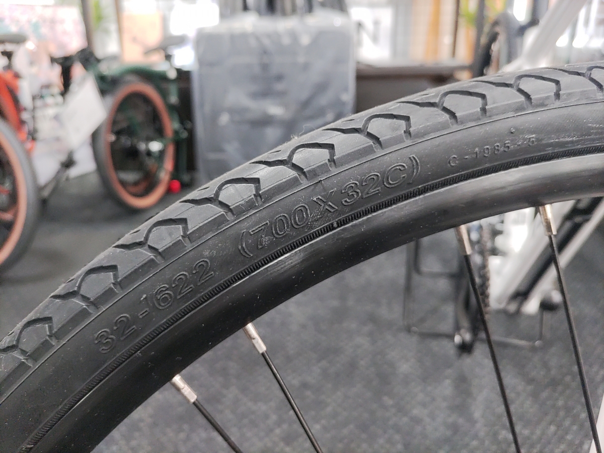 700×32Cの近年主流の太からず細からずのタイヤ幅なので、スポーツバイクが初めての方でも乗りやすいと思います。