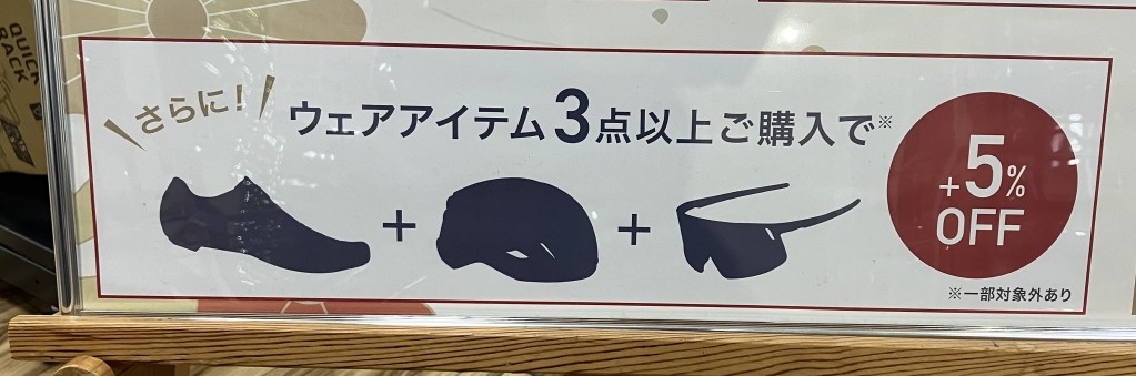 ウェア関連アイテム3点で5%OFFになります!ぜひご利用ください。