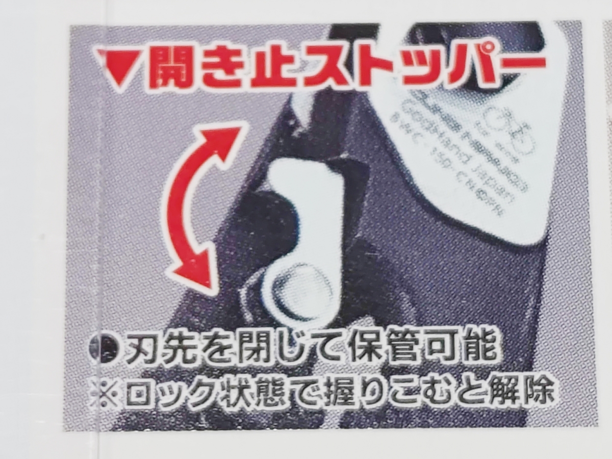 もうひとつ嬉しいポイントが、ロック機構が付いていることです。持ち運んでいる時に勝手に開いて、刃同士がぶつかって傷んでしまう…なんて心配がありません。