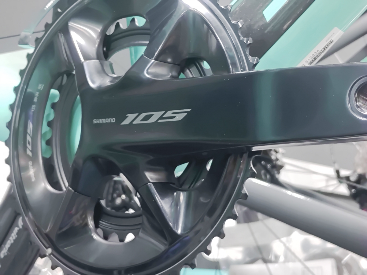 こちらの車体には機械式の105がインストールされております!12速モデルとなりますので、まったりライドからがっつりライドまでしっかり網羅されたギア構成となります。
