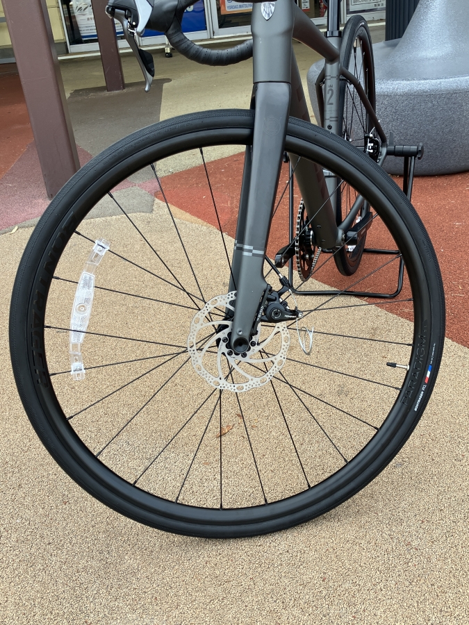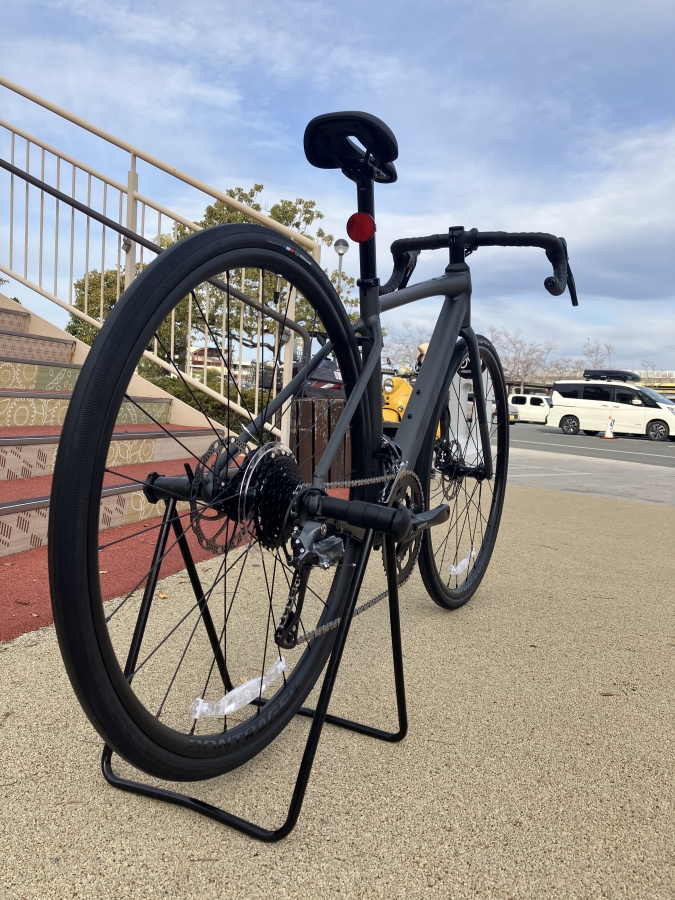 ロードバイクとしては太めの32Cタイヤにチューブレスレディ対応のParadigm SLホイールが組み合わされています。公式にもMAX38C対応(フェンダーなし)とありもっと太めのタイヤも使用可能です。タイヤによりますがグラベルタイヤに変更すればちょっとしたグラベルも走れちゃうかもしれません。