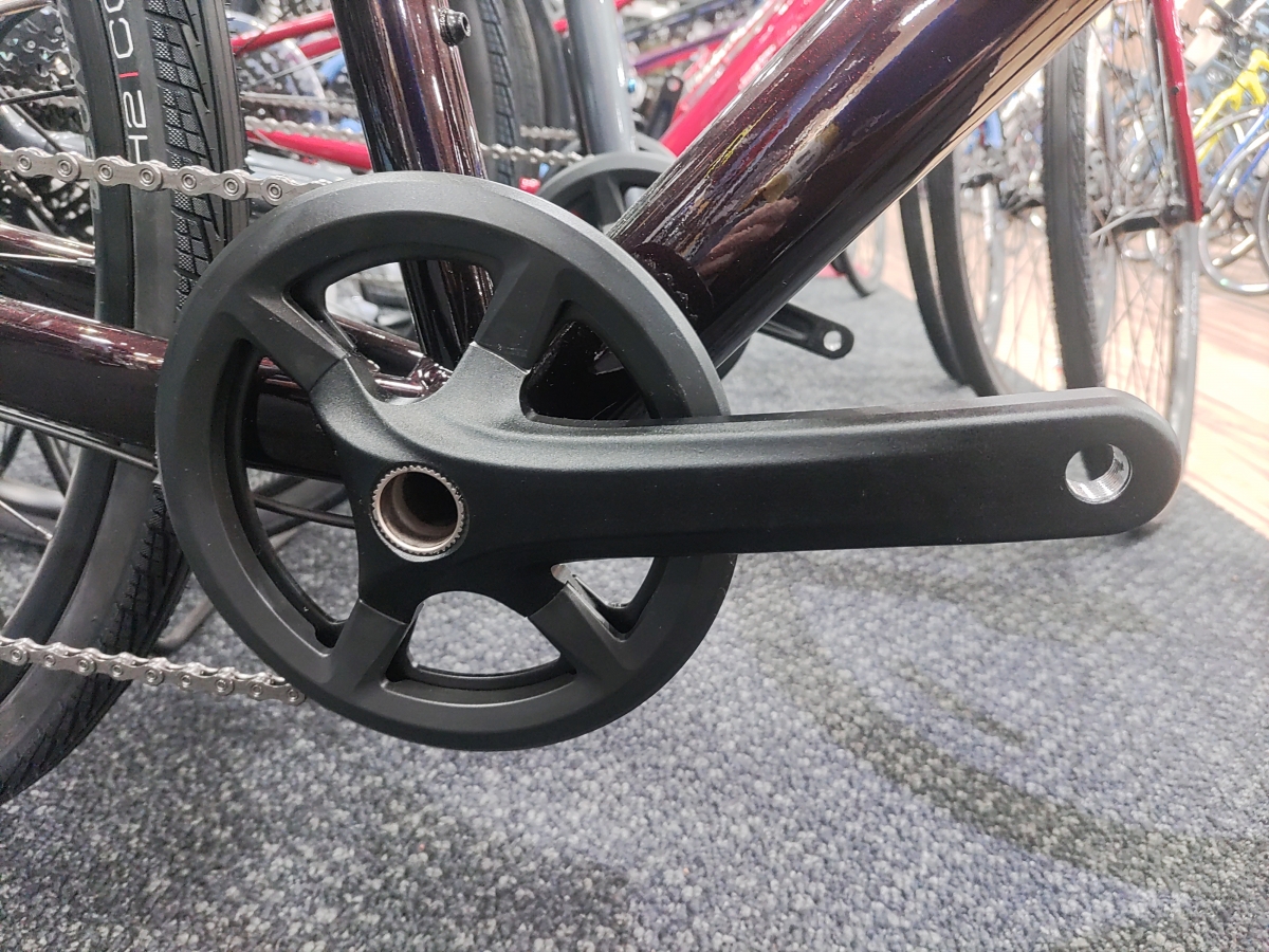 フロントディレイラーがないフロントシングル仕様となっており、チェーン落ちや異音を減らすことができます。