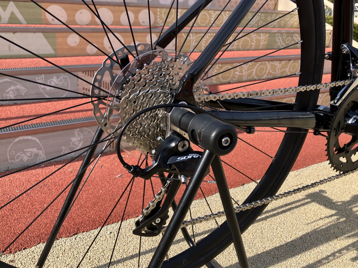 今回のモデルはSHIMANO SORAコンポ搭載、ディスクブレーキも搭載しており悪天候にも強く高いブレーキ能力も持っています。