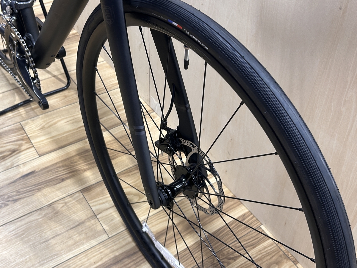 太いタイヤで楽に、きつくない前傾姿勢、最新のデイスクブレーキで更にスルーアクスルなのでホイールカスタムの幅が広がります。