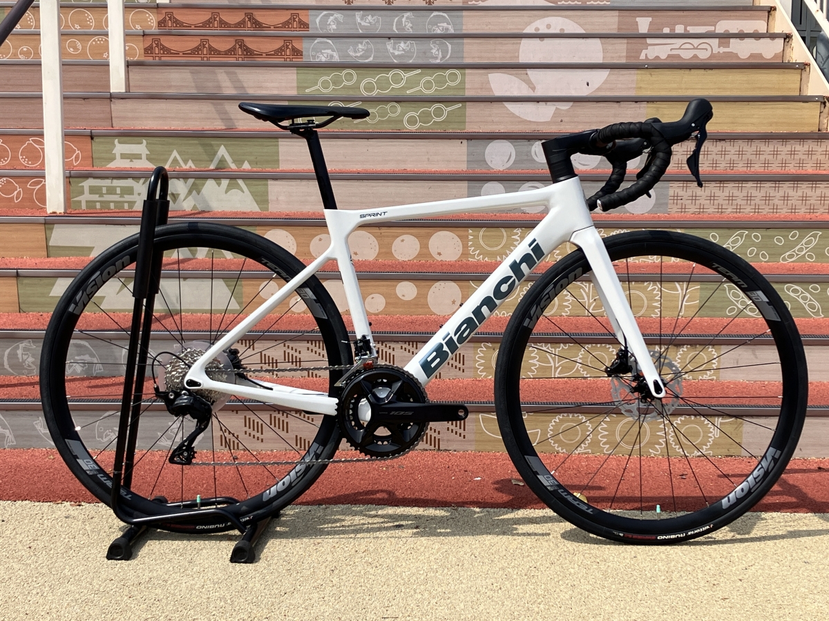 オールラウンドタイプのカーボンフレームにシマノ最新12速105でブレーキは油圧ディスクブレーキ搭載と欲しい要素満載のSPRINT。それがアルミロードと同じような金額で購入可能!!