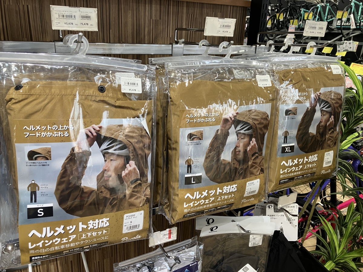傘固定器具を使用していても、自治体によっては積載制限(幅や高さ)を超えると違反になる場合があるため、注意が必要です。スポーツサイクルに限らずですが雨の日でも安全に乗るためのサイクル用レインウェアを使用しましょう。
