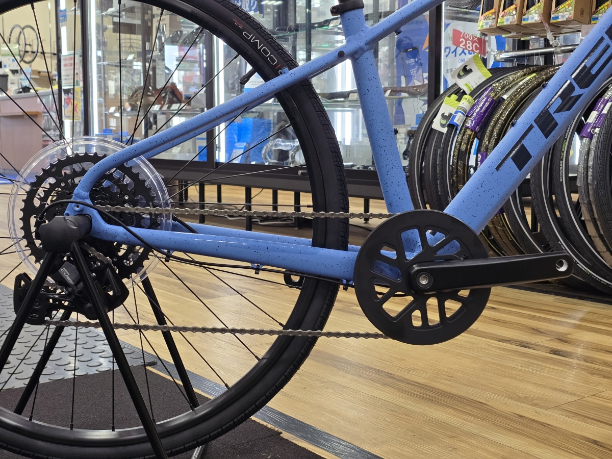 クロスバイクはフロント2段や3段のものが多いですが、チェーン落ちのリスクやズボンの裾を巻き込むリスクがあります。