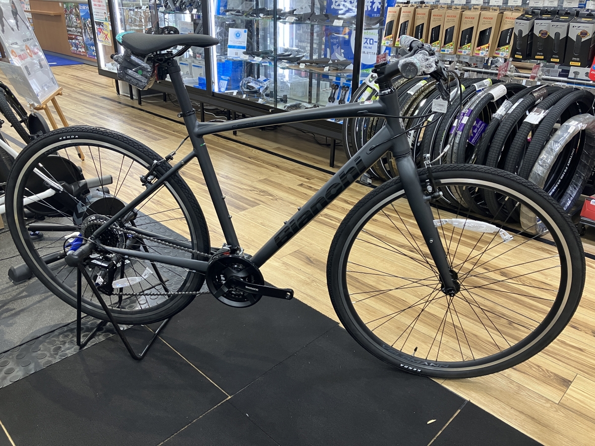 BIANCHIのクロスバイクC-SPORT。リムブレーキのC-SPORT1と油圧ディスクブレーキのC-SPORT2があり使い方やご予算で選んで頂けます。雨の日のブレーキ力は圧倒的にディスクブレーキの方が効きますので通勤通学など雨の日も乗る方はC-SPORT2をお勧め致します。