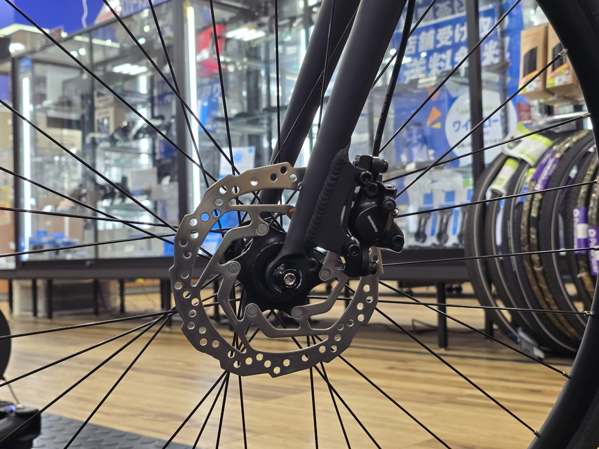 シマノの油圧ディスクブレーキを採用しており、軽い力で高い制動力を発揮してくれるので握力に自信がない方でも安心してブレーキをかけられます!