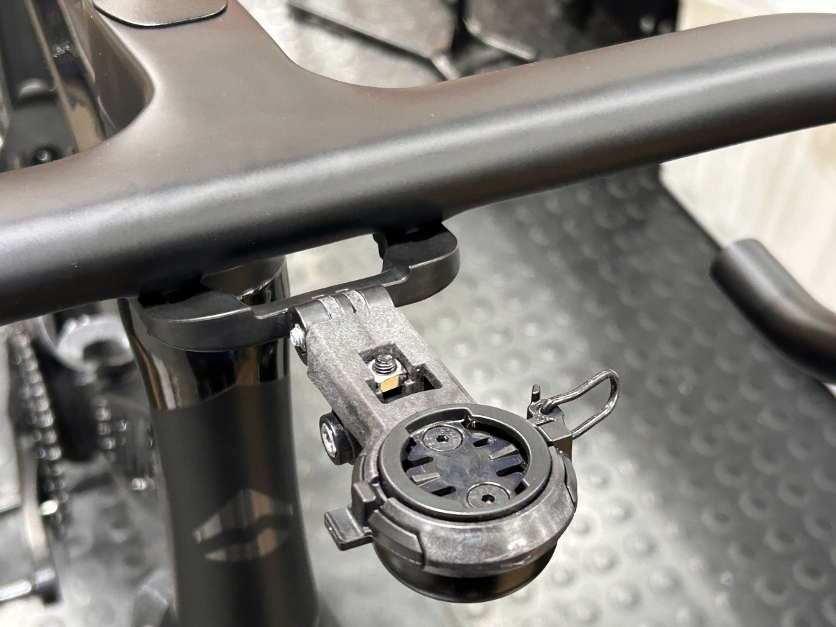エアロハンドルなので、ライトやサイコンなどの取り付けはハンドル下部のマウント取り付け用のねじを使用します。