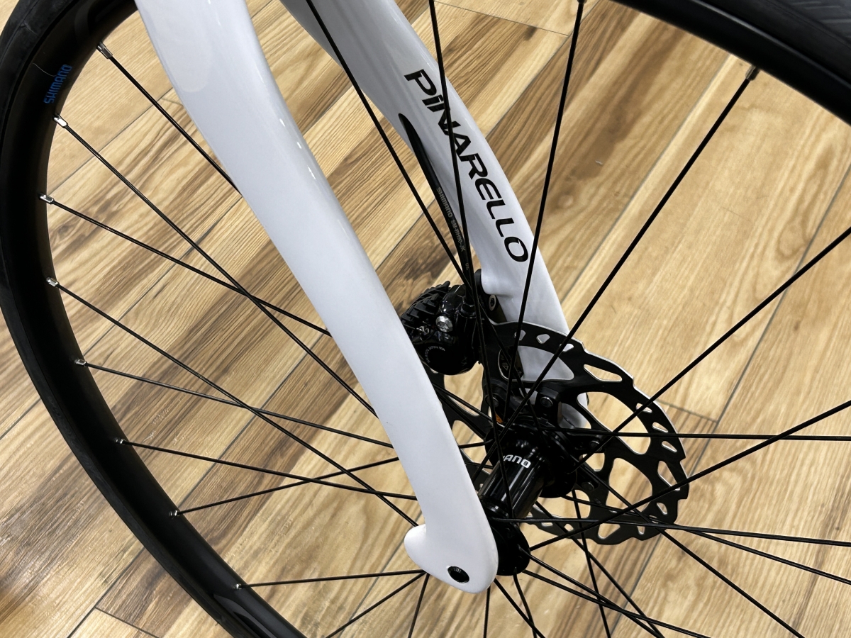 ピナレロのカーボンロードバイク、オンダフォークや、美しい形状などがしっかりつぎ込まれた車体です。
