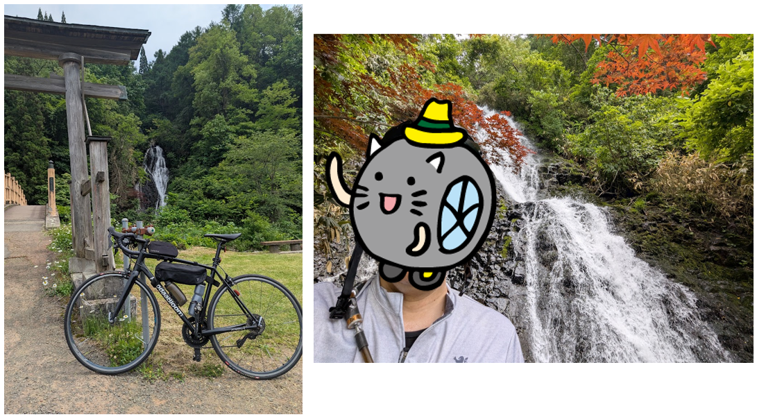 そんなこんなで80kmほど走ってから、最後の山登りへ。「小坂七滝」という、日本の滝100選に選ばれた滝とのこと。ちょっと写真撮り忘れたのですが、川にも入れるし、滝のすぐ近くまでアクセスできる良い所でした。
