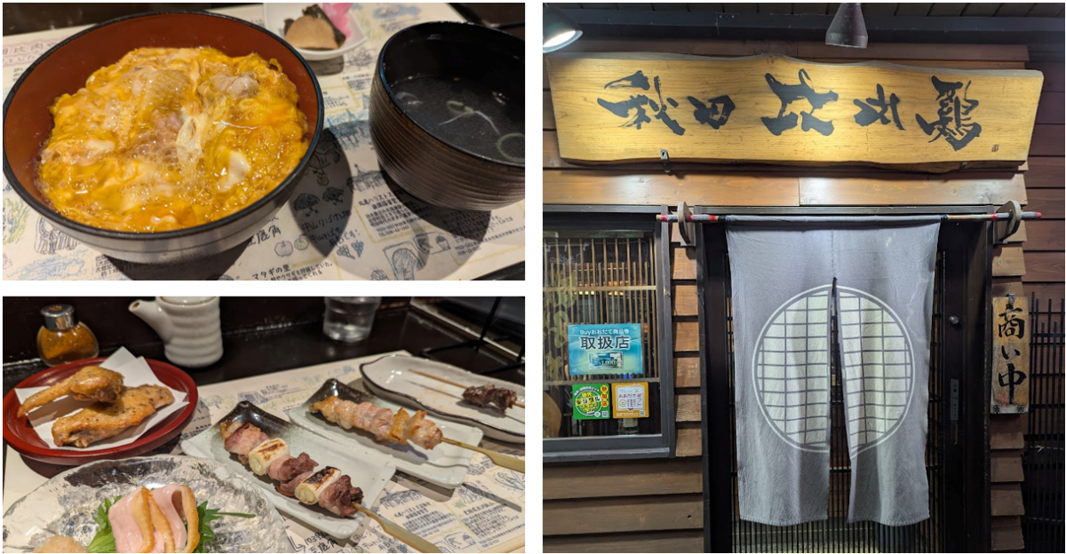 ということで、おいしい鳥と名高い比内地鶏を食べに行ってきました。せっかくなので地鶏のコースをお願いしまして、満足いくまで食べてきました。カウンターに座れたので目の前で焼いているのを見たりしながら堪能できました。大館に来ることがあったらまた来たいです。